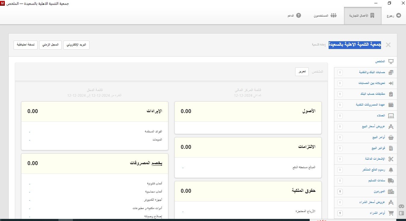 وجود البرنامج المحاسبي » جمعية التنمية الاهلية بالسعيدة